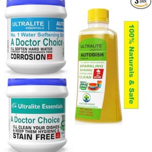 Ultralite essentials Dishwasher Autodish Rinse Aid Liquid- 200ml + Dishwasher Salt – 1Kg + Dishwasher Detergent Powder- 1Kg | 100% Natural & safe for our health