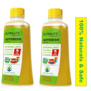 Ultralite Essential AutoDash Dishwasher Rinse Aid Liquid 200+200 Ml Adds Spotless Shine To Your Glassware Utensils, Prevents Water Mark | 100% Natural & Safe for our Health